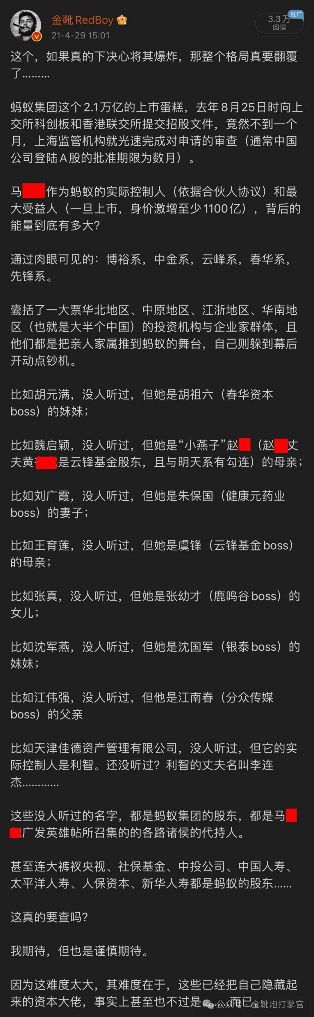 小燕子之所以遭遇持续五年之久的软封杀,也正是因为参与蚂蚁资本上市,这是一场动摇国家金融命脉根基和国有银行系统稳定的内外力量联动在一起的金融战争。